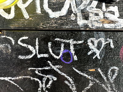 In the image, Margo Mac is captured in a moment of self-expression and style. She stands confidently against a backdrop of vibrant graffiti with intricate designs, adding to her edgy look.