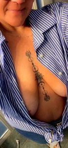 OnlyFans model Mariposa Latte is a striking 32-year-old woman with a unique sense of style. She's known for her distinctive tattoos and a strong affinity for fashion. In this image, she's captured in an unbuttoned shirt, showcasing her style. Her pose suggests confidence and assertiveness. This model is often sought after for her ability to capture attention and express individuality.