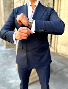 An image of Masis Sarkisian, a male model from Switzerland, exuding confidence and style in his formal attire.