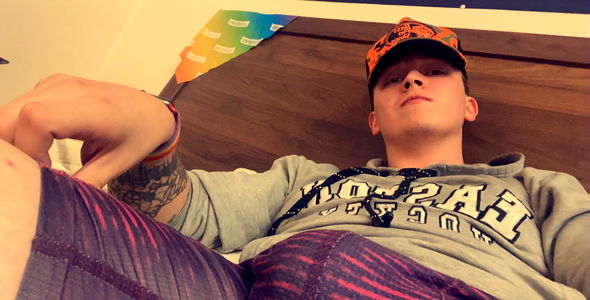 The image is set indoors, with a young man around the age of 23 as the primary subject. He's sitting comfortably on a sofa, his well-toned chest muscles bare. There's a raw, fleshy tone on his body, further accentuated by a series of intricate tattoos adorning his skin. Notably, he seems to be at the peak of his youth, his skin bearing the healthy glow of young adulthood. The boy's face is the focal point of the image. His features are sharp, youthful, and vibrant, with a certain depth in his eyes that draws you in. His face is partially covered by a stylish hat he's wearing, giving him a somewhat mysterious air. As for other details, the sofa where the boy is sitting is quite apparent in the image. Its texture and color contrast nicely with the boy's skin tone, making him stand out in the picture. The sofa also adds a sense of comfort and ease to the overall image, further enhancing the relaxed vibe it exudes.