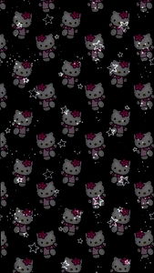 A captivating collage of the beloved cartoon character, Hello Kitty, against a stark black background. Matcha has captured the essence of fandom culture with this piece.