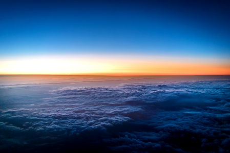 This image captures the breathtaking beauty of a vibrant sunset viewed from an airplane window. The warm orange and pink hues mingle with the cool blue tones, creating a stunning visual spectacle that evokes feelings of tranquility and wonder. The viewer's perspective is directly through the glass window, offering a clear and unobstructed view of the celestial event unfolding below.