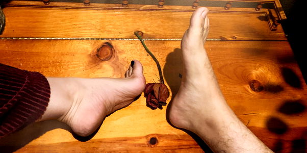 An intimate scene of a couple sharing a moment of relaxation with a foot massage. They are in a comfortable setting, enjoying each other's company and the soothing sensation of the massage. The image captures their shared joy, making it an ideal representation of pampering and bonding.
