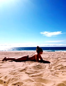 Megan Lynn enjoys her time at the beach, lying down in the sun and taking in the beautiful ocean view. Her bikini is perfect for the hot weather and she seems to be enjoying every moment.
