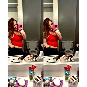 This is a vibrant and colorful OnlyFans model photo of Meghan Lynn, showcasing her confident and strong personality. She is posing in front of a mirror in her bathroom, holding up a peace sign and exuding positivity and self-assurance. Her outfit consists of a white tank top paired with blue jeans, adding to the casual yet stylish vibe. The bathroom setting suggests a relaxed and comfortable environment. This image highlights Meghan Lynn's approachable and relatable nature as an OnlyFans model.