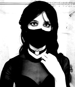 This image features an individual, presumably a woman, showcasing an expression of the goth subculture. The black and white color scheme emphasizes the atmospheric horror theme. She's wearing a masque, a notable element of the Halloween costume she is donned in. The masque covers the majority of her face, leaving her lips exposed, which contributes to the element of suspense and mystery. The mask is designed intricately, further enhancing the horror vibe. It's suggestive of a human face, but distorted and unsettling, which is a key aspect of the horror genre. It's clear the person is indoors, with a simple, unadorned wall in the background. This simplicity allows the viewer to focus entirely on the person and their striking costume. Her clothing, although not distinctly visible, complements the overall dark theme. The costume is designed to incite a sense of fear or unease, which it does effectively. The overall mood is chilling and eerie, perfectly embodying the essence of a Halloween horror theme.