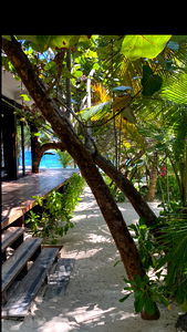 This image captures a vibrant outdoor scene bathed in the warm, inviting rays of the sun. At the center, a person, seemingly a young girl, is the main focus. She is clad in stylish swimwear, ready to fully embrace the joys of summer. The clothing she wears is not just functional for a day at the pool or beach, but also a statement of her youthful fashion sense. The backdrop of this sun-drenched scene is a lush array of greenery. Towering trees loom in the background, their leafy branches swaying gently in the summer breeze. Smaller plants dot the ground, providing a rich tapestry of varying shades of green that adds to the overall aesthetic of the setting. The ground underneath is visible, further enhancing the outdoorsy feel of the image. It complements the natural elements present and serves as a reminder of the earthy setting. Overall, the picture is a wonderful snapshot of a sunny, summer day outdoors with a girl enjoying her day in her swimwear.