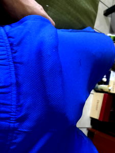 In this image, we see Melvin Dediego from Honduras, San Pedro Sula, Cortes. The photo is of him wearing a blue jacket and holding up the coat to show the inside. He appears to be indoors, with a door or table visible in the background. His expression seems focused, possibly on something not visible in the frame.