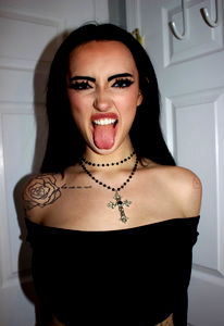 This image captures a young woman, approximately 26 years old, posing indoors for a provocative photo shoot. She is the epitome of sensuality and confidence, standing against a plain wall that serves to highlight her even more. Her attire is quite daring and distinct - she's clad in exquisite lingerie that appears to be from the high-end brand, Agent Provocateur. The lingerie set consists of a corset-style lingerie top and a matching garter, adding an element of allure. The brassiere accentuates her chest while the corset highlights her slim abdomen and stomach. Her choice of undergarment suggests that she could be a lingerie or fetish model. The woman's face, with perfectly done makeup, radiates a bold and fearless demeanor, emphasizing her role as a model. The overall composition of the image, along with the model's expression and pose, evoke a sense of bold femininity and strength. This intimate portrait is a celebration of the woman's body, making a statement about body positivity and self-expression.