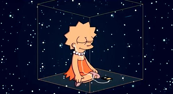 Image of Lisa Simpson from The Simpsons, sitting inside a starry space box.