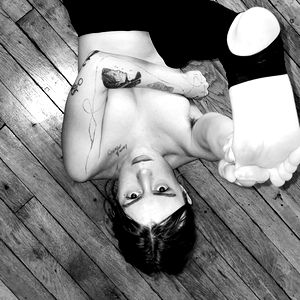 This captivating black and white image showcases a woman, possibly an art model, lying on a wooden surface. The monochromatic palette adds a timeless elegance to the image, intensifying the emotional depth and artistic appeal. The woman is the central focus of the image, her body gracefully sprawled across the floor. Her posture and expression suggest a sense of tranquillity or introspection, adding a narrative element to the picture. The grainy texture of the wooden floor beneath her is clearly visible, contributing to the overall rustic and vintage atmosphere of the scene. The setting appears to be indoors, characterized by a serene ambiance. The woman's attire is not explicitly visible due to the monochromatic color scheme. This image, in its simplicity and elegance, weaves a tale of its own, leaving enough room for the viewer's imagination. The photograph not only captures the physical form of the woman but also conveys a palpable mood, making it a compelling piece of art.