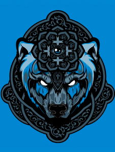 A digital illustration that combines the fierce nature of a bear with the intricate designs often associated with Viking culture. The artwork features a blue and gold color scheme, with the bear depicted in a menacing pose.
