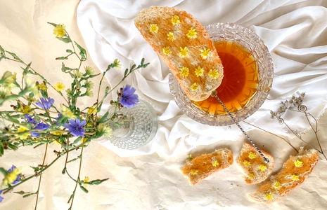 A tantalizing view of honey in the making, highlighting the precision and hard work of bees to produce our favorite sweetness. 100% natural and organic, a pure, unfiltered glimpse into nature's marvel.
