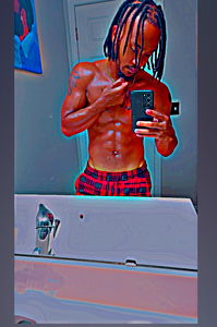 The OnlyFans model takes a mirror selfie, showcasing his fit physique and the bathroom setting with toiletries. His shirtless image is both confident and casual. He is in his mid-20s.