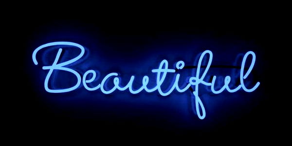 This is an image of a neon sign that reads 'Beautiful'. The sign has a playful twist, using handwriting as part of its design. It's a charming piece that could be used for various purposes such as decoration, advertising or simply as a statement artifact.