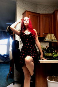 Arachnae is a rising star on OnlyFans, known for her captivating beauty and striking red hair. Her unique style and alluring persona are already gaining her a loyal following. In this image, she's seen striking a pose in a kitchen, exuding confidence and allure.