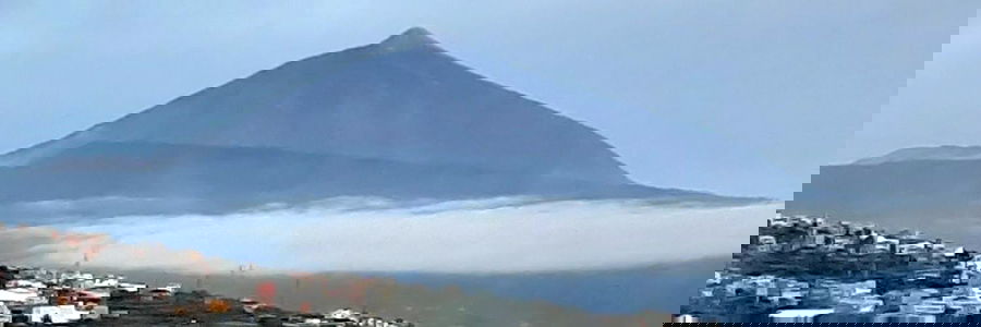 This is a captivating image showcasing a majestic mountain against a backdrop of a serene sky. The mountain, covered in lush greenery and topped with a peak, stands as a stunning focal point. In the distance, a small village can be spotted, adding to the idyllic scenery.
