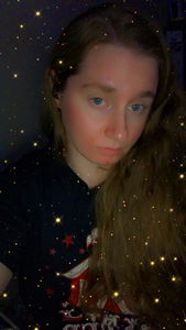 This is a captivating portrait of the renowned OnlyFans model Northern gals. Her enchanting gaze and radiant smile are the focal points of this image, set against a starry backdrop that adds to her allure.