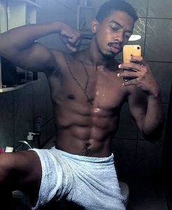 This image captures the fit and muscular physique of Adrianobthencurt, a popular OnlyFans model from Sรฃo Josรฉ do Rio Preto. His toned abs and well-defined muscles indicate a strict fitness regimen. The photo appears to be taken in a bathroom, as evidenced by the towel hanging nearby.