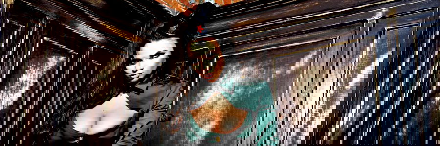 This image captures the alluring presence of Onlyfans model Phoenix, who is elegantly dressed in an off-the-shoulder top. She exudes confidence and sensuality as she poses in what appears to be a private room with a distinctive red and white wall backdrop.