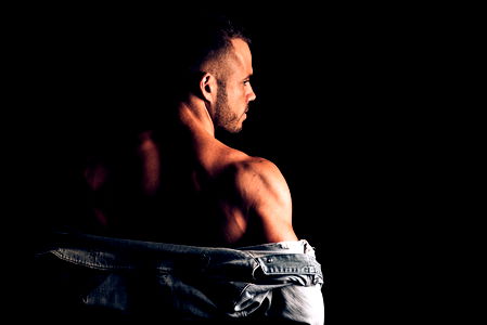 A muscular OnlyFans model from Spain, Nacho Trechera. Shot in black and white, he is seen flexing his physique, emphasizing his strength and dedication to fitness.