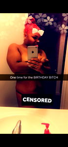 SexyScorpioK, an OnlyFans model known for her seductive and candid content, has taken to Instagram to share a nude selfie. The photo is a split-screen image with the model in the top half of the screen, dressed in a bikini, standing in front of a mirror, holding an iPhone. On the bottom half of the screen, there's a close-up shot of her holding her head and looking at the camera, conveying a sense of contemplation or vulnerability. The image has been censored with a large red stamp on the bottom half, indicating nudity. The caption of the post reads 'One time for the birthday girl, bitch.'