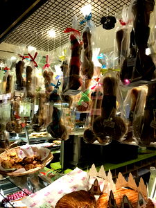 Discover a delightful array of chocolate treats, from bite-sized delights to larger pieces perfect for sharing. The candies are beautifully packaged and showcased behind the counter, with enticing colors and textures that make you want to taste them all!