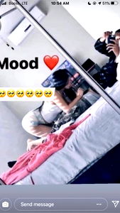 A young adult in a playful pose, suggesting they're in a fun mood. They're holding up a mirror to capture their reflection, emphasizing the social nature of the photo. The image also has an OnlyFans link overlaid on it, indicating an invitation to follow them for more content.
