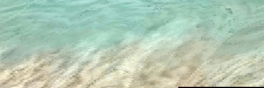 This image captures a serene beach setting with clear waters and white sand. The photo has been processed to give it a vintage filter, adding a nostalgic touch to the scene.