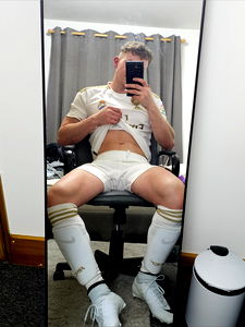 Ollie James, a popular OnlyFans model, poses confidently in his soccer uniform. He's showcasing his athletic build and highlighting his passion for the sport.