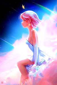 A captivating digital illustration featuring the popular 3D character 'Heart' from OnlyFans. This image showcases the character in an ethereal setting, with a cosmic starscape in the background, adorned with sparkles that add a magical touch. The character's pose and the surrounding environment evoke a sense of wonder and otherworldly beauty. Perfect for fans and admirers of this digital art style.