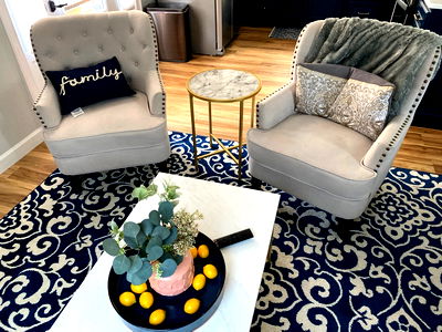 A model strikes a pose on a couch, exuding confidence and fashion-forward style.