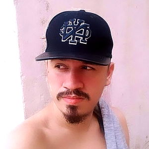 A young man from Manaus, Brazil-Amazonas, stands in a casual pose. He is wearing a baseball cap with an emblem and has a beard. The background is simple and does not distract from the subject.