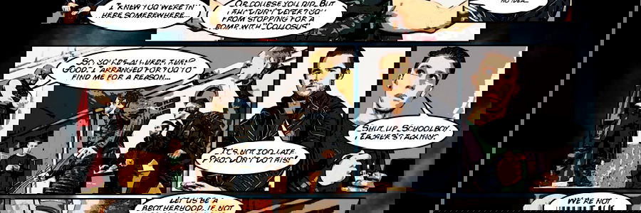 This vibrant image is reminiscent of a comic strip, featuring two male cartoon characters engaged in a musical event. The younger man on the right, appearing to be in his mid-twenties, is noticeably speaking into a microphone, which suggests he might be a singer or a presenter. His eyes are wide, possibly in surprise, amusement or enthusiasm, matching the lively mood of the scene. The older male character, who seems to be in his mid-thirties, is situated to the left. His expression appears more reserved and thoughtful, creating an interesting contrast to the animated demeanor of his counterpart. The unique clothing of the characters, featuring various designs and patterns, enhances the cartoonish style of the image. Text elements are present throughout the picture, adding to the comic-like atmosphere. The inclusion of musical elements, such as the microphone, suggests a melodic theme. Overall, the image exudes a playful, entertaining vibe, potentially from a lively music-themed cartoon or comic strip.