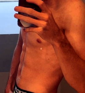 Onlyfans model Pblv showcasing his well-defined body in a shower with water dripping off. His chiseled abs and pectorals stand out. Photograph captures the moment from a top down perspective.