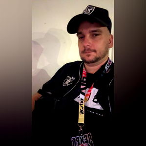 An individual posing in a sports jersey with a cap, likely related to Australian Rules Football (AFL), given the team logo and clothing style. The person is also wearing a lanyard that suggests they may be attending or involved in an event related to their fandom. They seem to be engaged in the content they are associated with.