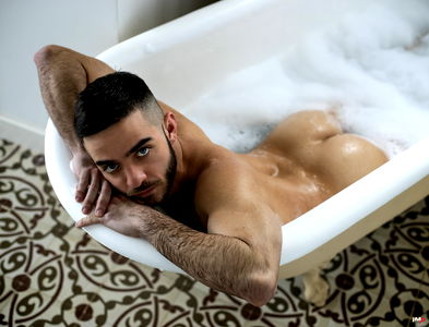 This is an image of a muscular man who appears to be in his mid-thirties. He is shirtless, showcasing his well-toned chest, abdomen and arms. His muscles are well-defined, indicating a high level of fitness and possibly a regular workout routine. His skin appears to be smooth and well taken care of. The man's face is partially visible, showing strong features with a well-defined jawline and cheekbones. He doesn't seem to be wearing any clothing on his upper body, which further accentuates his physical fitness. The setting appears to be indoors, possibly a personal or professional space, as suggested by the presence of a wall in the background. The lighting is well-balanced, casting a natural glow on the man's physique. The man's elbow is also visible, adding to the overall sense of strength and fitness conveyed by the image.