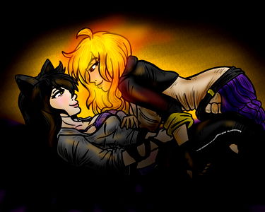 The artwork is a digital illustration of the OnlyFans model Mia. It features her in a dynamic pose, interacting with another character. She is depicted with vibrant colors and dynamic shadows, giving the piece a lively and engaging feel. The background is dark with warm lighting that highlights the subjects and creates an intimate atmosphere.