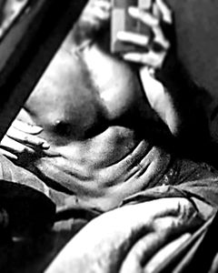 Mont, a prominent OnlyFans model, stands confidently in his personal space. He is shirtless and exudes an air of casual elegance. This image showcases the model's unique style.