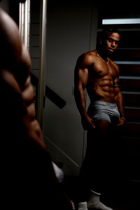This image features a muscular man showcasing his well-defined physique. The man appears to be shirtless, allowing the viewer to see the intricacies of his muscular form. His chest muscles are noticeably developed, displaying a level of fitness and strength that suggests a devoted commitment to bodybuilding. The same can be said for his abdominal area, where a well-defined set of muscles can be seen. The man's shoulders and neck also exhibit a degree of muscularity, indicating a comprehensive workout routine. His elbows are visible too, hinting at the strength of his arms even though they are not the primary focus of the image. The man is wearing jeans, a casual garment that contrasts with the intensity of his toned physique. Overall, the image portrays the man as a dedicated bodybuilder, with a focus on his chest and stomach muscles. His bare-chested appearance and casual jeans attire create a unique blend of casual and intense aesthetics, further highlighting his muscular form and dedication to fitness.