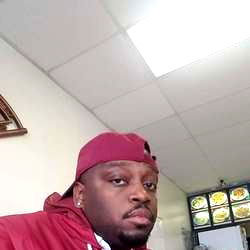 The image features a man in a restaurant, wearing a red baseball cap and looking directly at the camera. He is seated with a casual posture, and behind him, there are items typically found in a fast-food establishment. The setting suggests a relaxed atmosphere, possibly during a meal or break time.