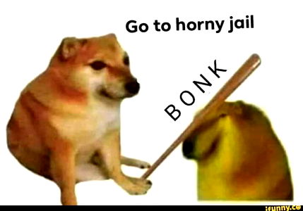 This is a meme featuring an image of Doge, who has been parodied and transformed into various roles. In this particular meme, Doge is depicted as a cop in a humorous scenario where he says 'Go to horny jail.'