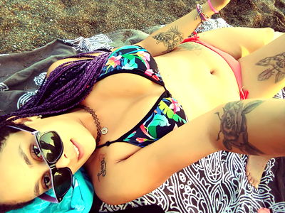 Rapsodia, a stunning OnlyFans model from Costa Rica, is captured in this alluring beachside photo. She's lying on her side on a vibrant beach towel, her hair tied back, adding to the seductive vibe. The ocean breeze and the warm sun create an atmosphere of relaxation and leisure. Her swimsuit, paired with sunglasses, further emphasize the beach setting.