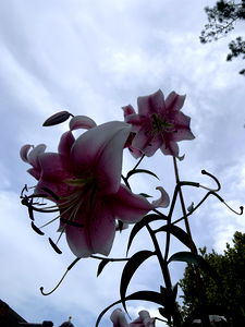 A tranquil scene of nature's beauty, with a vibrant bouquet of lily flowers reaching for the sky. The soft-focus background creates an atmosphere of serene calmness.