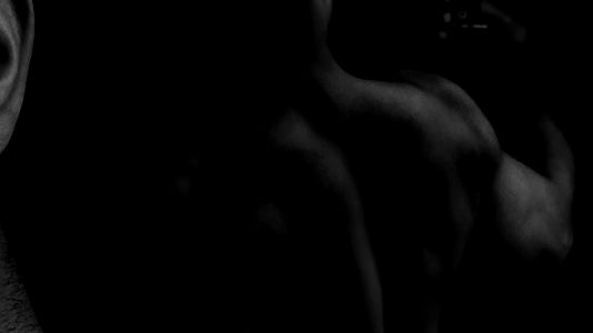 The image captures a powerful display of the human form, showcasing a bare torso in intricate detail. The image is steeped in a sense of raw, unfiltered realism that speaks volumes of the art model's physical prowess. The focus is on the chest, stomach, back and muscles, inviting the viewer to appreciate the strength and form of the subject. The muscular definition is evident, evoking a sense of awe and admiration. The model's skin, referred to as 'flesh' in the image, is also prominently featured, contributing to the overall theme of human physicality. The use of light and shadow playing across the model's physique enhances the viewing experience, accentuating the contours of the body. The image is not merely a representation of the human form, it also resonates with erotic undertones. This aspect is subtly implied, creating a sensual ambiance that complements the aesthetic representation of the model. It's a delicate balance between art and eroticism, making it an intriguing piece of nude photography. This image is a testament to the beauty of the human body, captured with remarkable precision and artistry.
