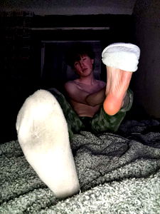 A young adult male posing for a selfie with an oversized sock. OnlyFans content creator. UK resident.
