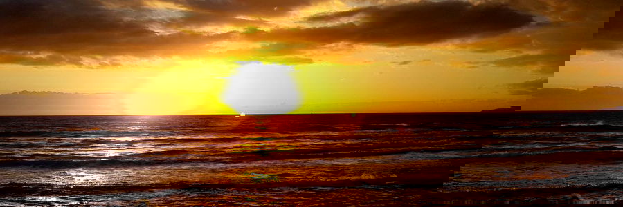 Ronniev85 captures a stunning sunset at the beach, with the warm glow of the setting sun casting long shadows and painting the sky in hues of orange. The calm ocean water meets the horizon in the distance, offering a serene and peaceful scene.