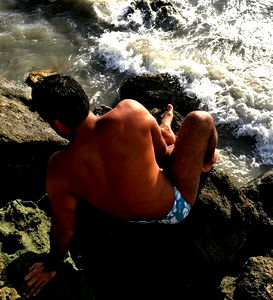 Beautiful and strong man from OnlyFans with chest hair, caught in a moment of concern or contemplation.