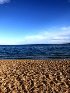 Serene beach scenery with clear blue skies, inviting sandy shore.