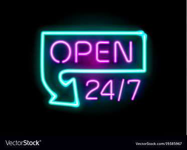 An eye-catching neon open sign with a 24/7 operating hours for an establishment, featuring the familiar 'OnlyFans' logo, designed to attract potential patrons.